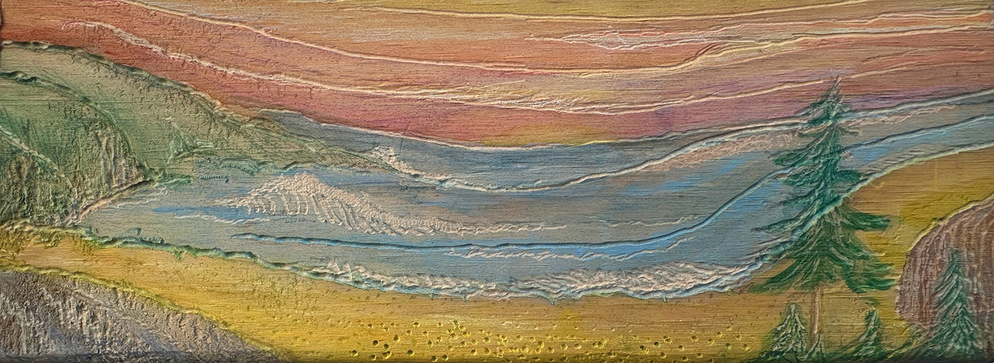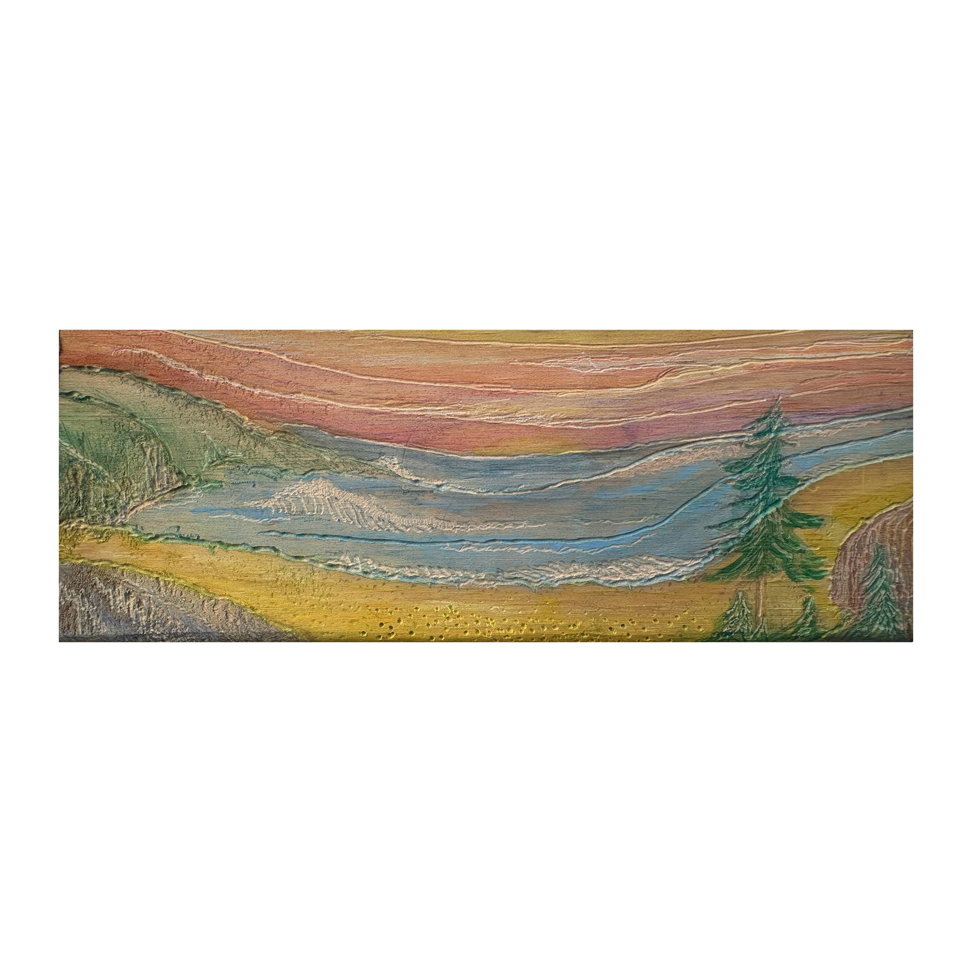 Custom painting of Oregon Coast tree scape on wood, 8 1/2 in x 3 1/4 in x 1 1/4 in thick.